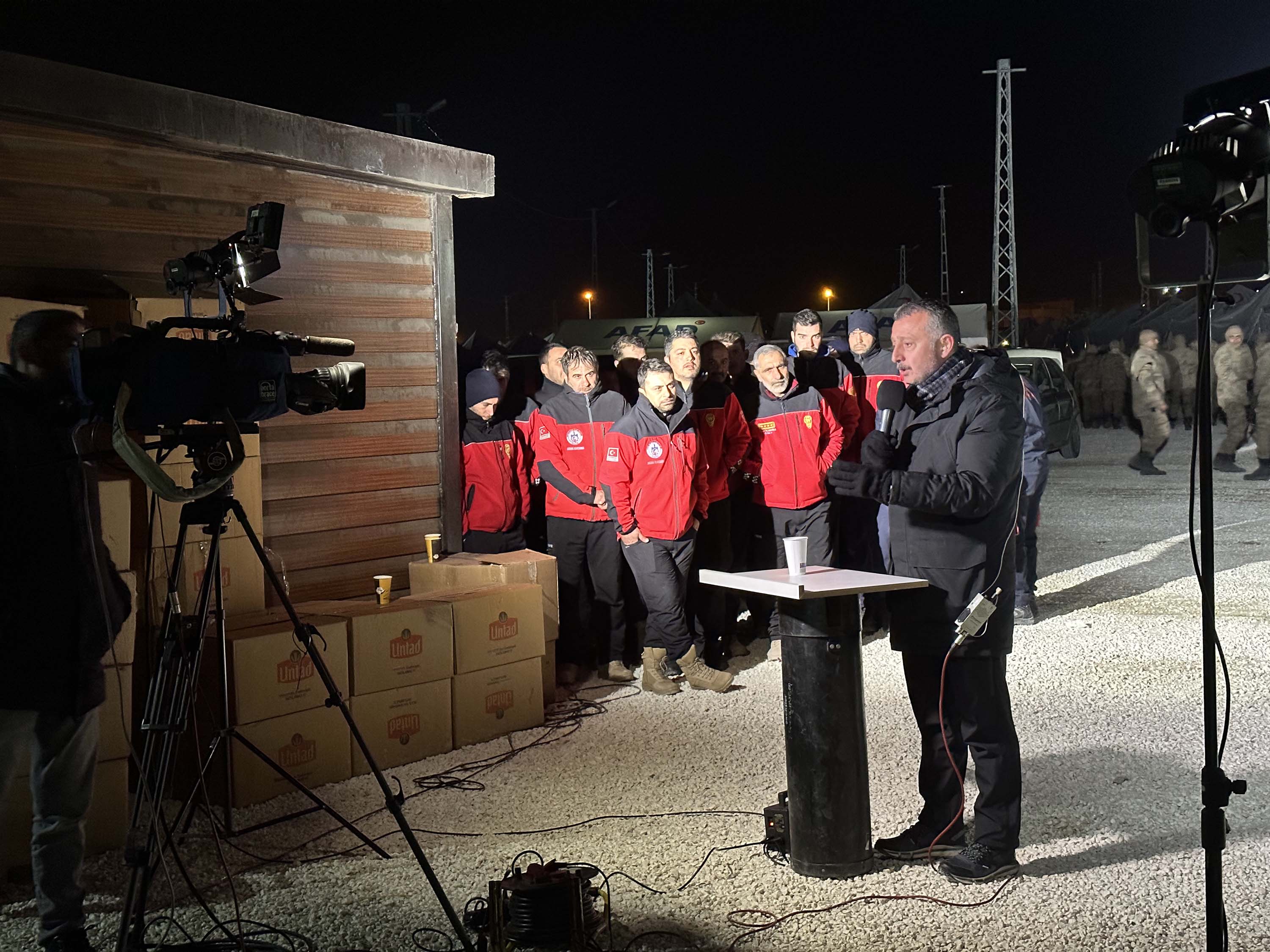 Depremin ilk gününden itibaren enkazda arama kurtarma çalışması yapan, tonlarca ağırlıktaki molozların arasına korkusuzca giren ve 82 kişiyi yaşama bağlayan Büyükşehir ekiplerine de ayrı bir parantez açan Başkan Büyükakın, ‘’Enkazda çalışan kahramanlarımız var. Bizim ekiplerimiz afetler için çok iyi yetiştirildiler. Afet tırımız hemen deprem bölgesine yetişti. Onlar isimsiz kahramanlar. Depremden 1 saat sonra yola çıktılar ver hemen Maraş’a ulaştılar. Adıyaman ve Hatay’da arama kurtarma yaptılar. Toplamda 82 canı kurtardılar. Amatör bir ruhla çalışıyorlar, tam bir imanla çalışıyorlar. İtfaiye ve A Takımı ekiplerimiz birlikte fedakârca çalışıyorlar. Her birine yürekten şükranlarımı iletiyorum. STK’lara da teşekkür ediyorum. Türkiye’nin dört bir yanı tek yürek oldu. Sivil toplumun gücünü, onlarla beraber afetlerin yönetilmesi gerektiğini tekrar görmeliyiz diye düşünüyorum. Çok sayıda askerimiz, vatan evlatlarımız çok kısa sürede çadırları kurdu. Ülkenin her yerinden gelen polislerimiz var. Türkiye burada tek yürek oldu, birlikte atıyor’’ dedi.