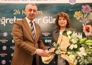 Başkan Büyükakın sözlerini şöyle tamamladı: “Buradan şunu da vurgulamak istiyorum. Aslında ilk öğretmenlerimiz annelerimiz yani kadınlarımız. Dolayısıyla öğretmenlere yapılacak her türlü yatırımın yanında kadınlarımıza yapılacak yatırımın da ayrı bir önemi olduğunu ifade etmek istiyorum. Bu noktada öğretmenlerimize de büyük bir görev düşüyor. Kadınlarımızın toplumdaki rolünü güçlendirecek olan, kız çocuklarımızın okullaşma oranını artıracak olan tüm projelere destek vermeye hazır olduğumuzu özellikle ifade etmek istiyorum. Bu vesile ile bir kez daha Öğretmenler Gününüzü kutluyorum. Size büyük değer verdiğimizi unutmayın.” Başkan Büyükakın, konuşmasının ardından ilkokul öğretmeni Hatice Tunay, emekli öğretmenler Hüsnü Dere ve Ayşe Üçtepe ile aday öğretmenler adına Senanur Sarıtaş’a çiçek takdim etti.