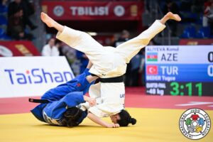 Gürcistan’ın başkenti Tiflis’te düzenlenen organizasyonda fırtına gibi esen Kağıtsporlu judocumuz, turnuva boyunca sergilediği teknik üstünlükle izleyenleri büyüledi. Heyecan dolu final müsabakasında İsveçli rakibi Tara Babulfath ile karşı karşıya gelen Tuğçe Beder, müthiş konsantrasyon ve azimle rakibini mağlup ederek şampiyonluğa uzandı.