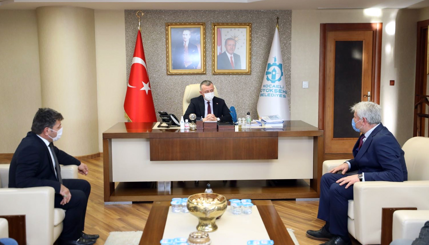 Marmara Belediyeler Birliği ve Kocaeli Büyükşehir Belediye Başkanı Doç. Dr. Tahir Büyükakın, Kocaeli Arı Yetiştiricileri Birliği Başkanı Hüseyin Yılmaz ve yönetimiyle bir araya geldi. Markalaşmadan sağlıklı pazar oluşturulmasına kadar birçok konunun ele alındığı görüşmede, bal ve arıcılıkta Kocaeli’deki potansiyelin çok daha fazla olduğuna dikkat çeken Başkan Büyükakın, “Arı yetiştiricilerimize her fırsatta destek veriyoruz, vermeye devam edeceğiz. Bu noktada üreticilerimizin elde ettikleri ürünlerin, daha geniş bir pazar yelpazesi içinde tüketiciyle buluşturması için adım atacağız. Komeksepeti projemiz bu noktada da çok önemli bir yere sahiptir” dedi.