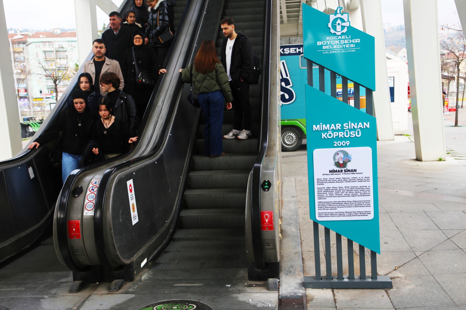 Aynı zamanda Kocaeli genelindeki yaya üstgeçitlerinin isim tabelalarının değiştirilmesi çalışmasına da start verildi. 2009 yılında inşa edilen Mimar Sinan Üst Geçidi’nin isim tabelası değişirken, köprünün yürüyen merdivenlerinin başında yer alan ve Mimar Sinan’ı anlatan panolar da değiştirildi. Yeni logo çalışması ve Büyükşehir’in kurumsal rengine uygun olarak yürütülen çalışmalar köprüyü kullanan yayalar tarafından da ilgi ve beğeniyle karşılandı.