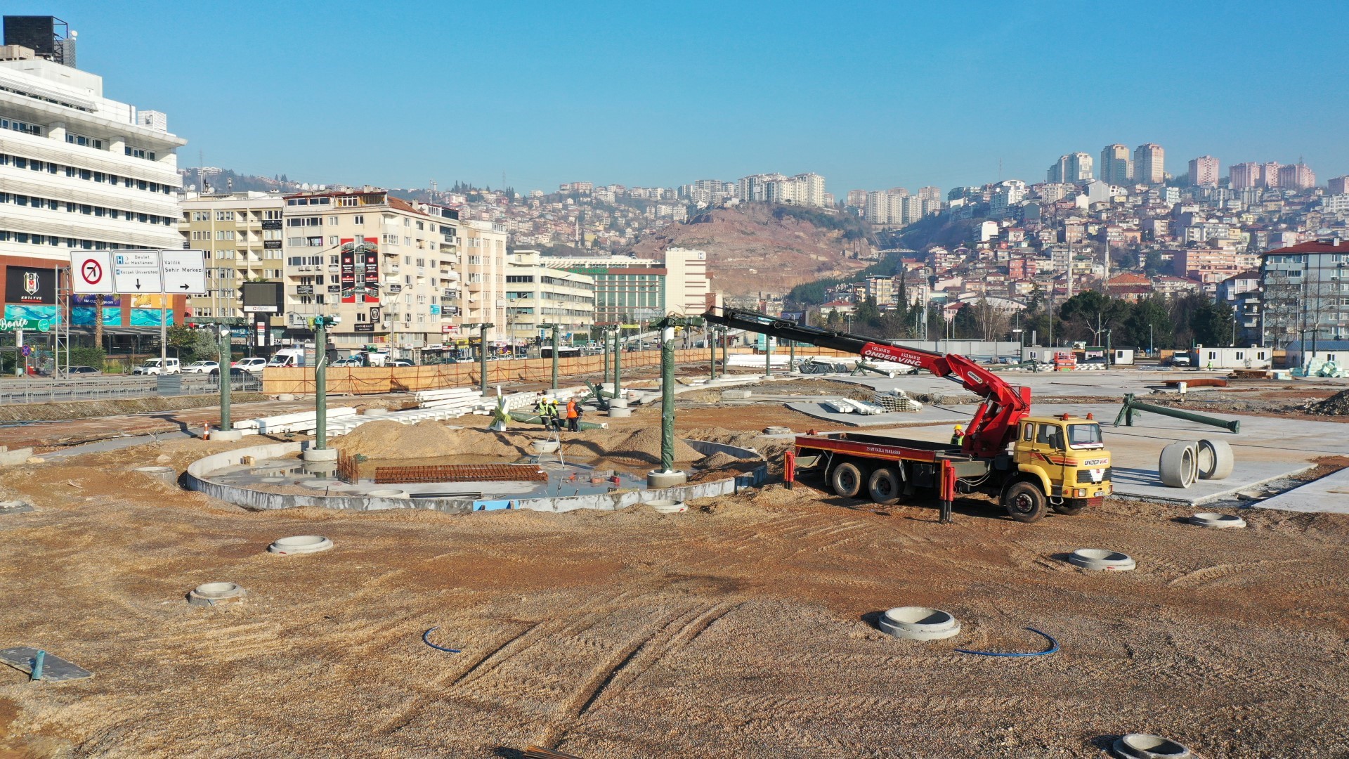 Milli İrade Meydanını dünya meydanlarıyla boy ölçüşecek bir projeyle kent meydanına dönüştürmek için kolları sıvayan Kocaeli Büyükşehir Belediyesi, sahadaki çalışmalarını sürdürüyor. Saha imalatları tamamlanan projede ana yapının çelik konstrüksiyon montajına geçildi.