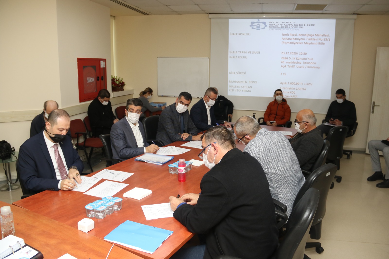 Kocaeli Büyükşehir Belediyesi Genel Sekreteri Balamir Gündoğdu’nun başkanlığında yapılan encümen toplantısında, Birinci Hukuk Müşaviri Necmi Özen ve encümen üyeleri de hazır bulundu. Önümüzdeki günlerde faaliyete girecek olan Pişmaniyeciler Meydanındaki iki dükkan ve bir büfe için ihale gerçekleştirildi.