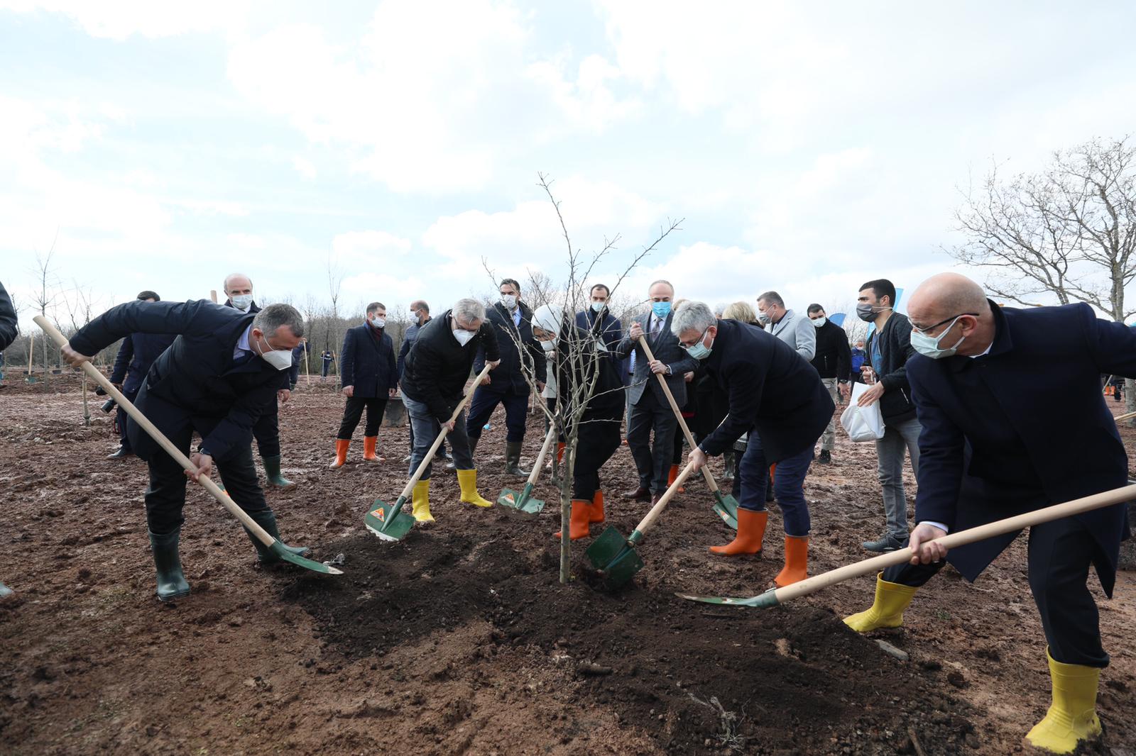 “Daha önce dolgu alanı olarak kullanılan 60 bin metrekarelik bu alanda bugün 2.500 adet fidanı toprakla buluşturuyoruz. Dikilecek ağaç türleri arasında ‘’Toros Sediri, Fıstık Çamı, Ihlamur, Dışbudak, Akçaağaç ve Meşe’’ bulunuyor. Ayrıca ‘’Dut, İncir, Muşmula, Kiraz, Erik, Armut, Ayva, Kocayemiş, Kuşburnu’’ gibi meyve ağaçları da dikeceğiz. Buraya da ‘’Sağlık Çalışanları Hatıra Ormanı’’ adını verdik…Hatıra ormanımızın ağaçlandırılması tamamlandıktan sonra, burayı mesire alanı olarak halkımızın kullanımına sunacağız. Bu alanı binlerce, belki milyonlarca kişi ziyaret edecek… Buraya her geldiklerinde, burada büyüyen her ağacı gördüklerinde sağlık çalışanlarımıza gönülden teşekkür edeceklerine inanıyorum.”