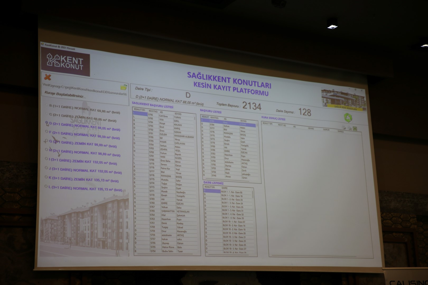 Ardından elektronik yöntemle yapılan çekilişte 43 adet 1+1 daire için 610 kişi, 148 adet 2+1 daire için 3 bin 92 kişi, 21 adet 3+1 konut daire için ise 1113 kişi arasında hak sahipleri belirlendi. Asil hak sahipleri dışında kurada yedekler de belli oldu. Kuradan çıkan isimler Yeni Evim Kampanyası çerçevesinde evlerin ödemelerini yapacak.