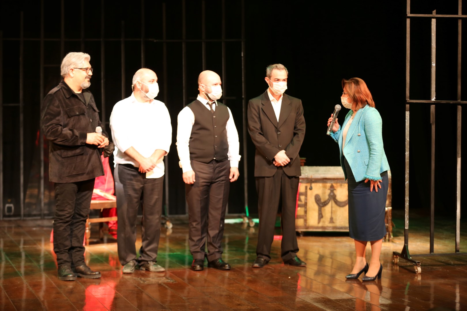 Gaziantep Büyükşehir Belediyesi’nin davetiyle Kocaeli Şehir Tiyatroları Gaziantep’e gitti. Gaziantep Büyükşehir Belediyesi Şehir Tiyatrosu Onat Kutlar Sahnesinde seyirciyle buluşan oyunda salgın kuralları göz ardı edilmedi. Oyuna sınırlı sayıda davetli kabul edilirken, oyun başlamadan tüm davetlilerin ateşi ölçüldü ve HES kodları kontrol edildi.