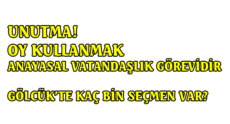 YSK’nın açıkladığı verilere göre, Gölcük’te 118 bin 19 seçmen bulunuyor. Sandığa gitmek ise katılımcı demokrasinin bir gereğidir; demokrasiye sahip çıkmaktır ve önemli bir vatandaşlık görevidir.