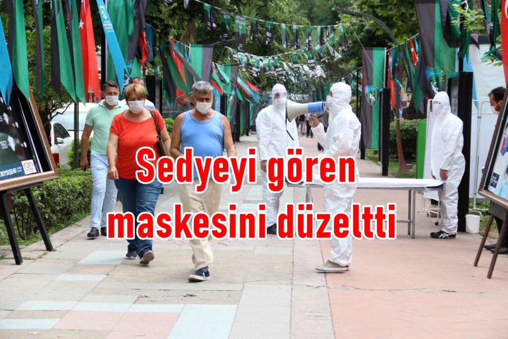 Koronavirüs salgınında gerek Sağlık Bakanlığı gerekse de bilim insanları, virüsten korunmanın en önemli yollarından birinin doğru maske kullanımı olduğu üzerinde duruyorlar. Ama özellikle yaz aylarının da gelmesi ile ağız ve burnu tam şekilde kapatması gereken maskenin çene altına indirilmesi, sadece ağzın kapatılması veya elde taşınması büyük risk oluşturmakta. Bu duruma dikkat çekmek isteyen Kocaeli Büyükşehir Belediyesi Şehir Tiyatroları, İzmit Yürüyüş Yolunda gerçekleştirdikleri sosyal deney ile maskesini doğru bir şekilde takmayan vatandaşları önüne geçen tulumlu ve sedye taşıyan görevliler temassız bir şekilde uyardı. Sosyal deneyde maskesini doğru takmayan vatandaşların verdiği tepkiler birbirinden ilginç ve güzel görüntüler ortaya çıktı.