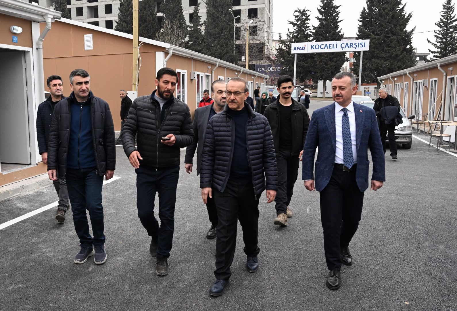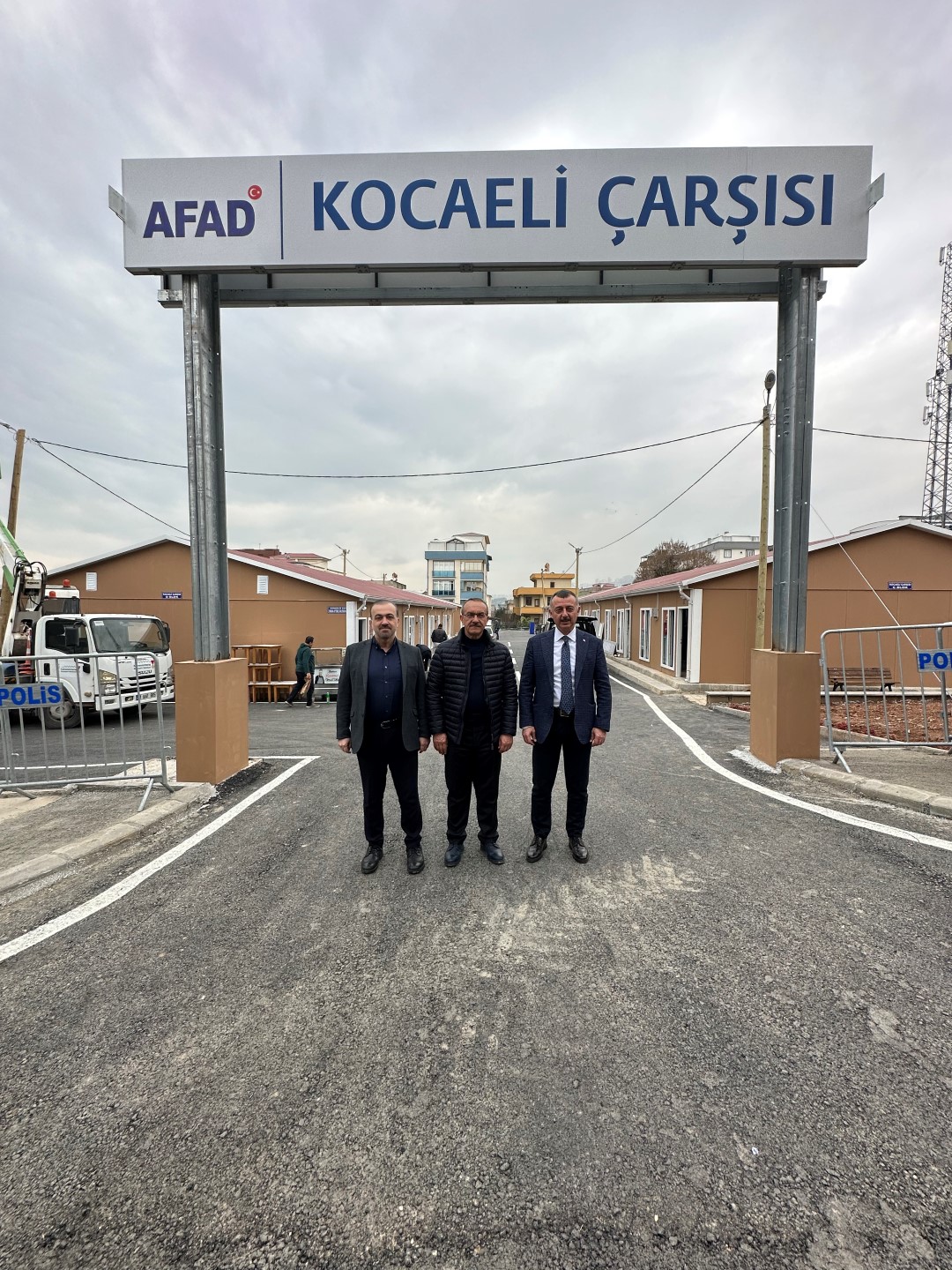 Başkan Büyükakın ile İl Başkanı Talus, Kocaeli Valiliği’nin Kahramanmaraş’ta kurduğu Kocaeli Çarşısı’nda Vali Yavuz ile bir araya geldi. 7 blok ve 50 iş yerinden oluşan ve 18 gün gibi kısa bir sürede tamamlanan çarşıyı dolaşıp, esnafa hayırlı işler dileyen Başkan Büyükakın, bölgedeki üstün gayretleri nedeniyle Kocaeli Valisi Yavuz’a başarılar diledi. Deprem bölgesinde ticari hayatın canlanması için atılan bu adımın büyük değer taşıdığını vurgulayan Başkan Büyükakın, incelemelerinin ardından Hatay Defne’de Kocaeli Büyükşehir’in kurduğu çadır kent, hastane ve konteyner kentte incelemelerde bulunacak ve burada kalan vatandaşlarla iftar açacak.