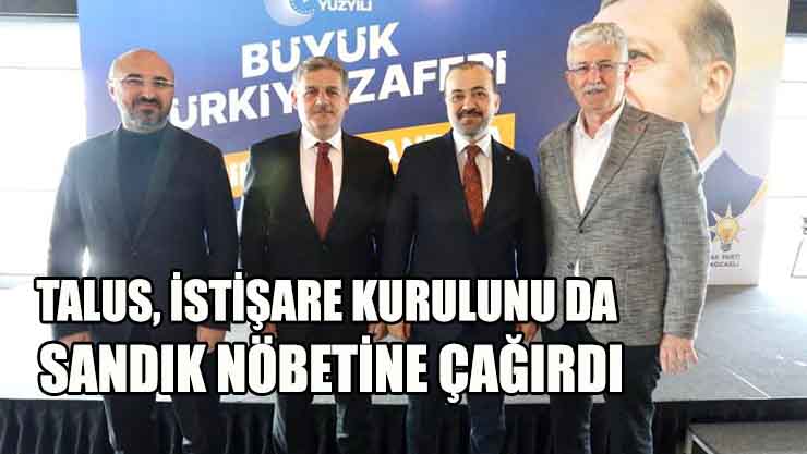 AK Parti Kocaeli İl Başkanı Dr.Şahin Talus’un, bu pazar günü yapılacak Cumhurbaşkanlığı 2.tur seçimleri öncesi kritik toplantıları devam ediyor. Talus, önceki gün istişare kurulunu bir araya getirdi. En önemli isteği, geçmiş dönem belediye başkanları ve yöneticilerden okullarda, gerekirse sandıklarda gönüllü görev almalarını istedi.