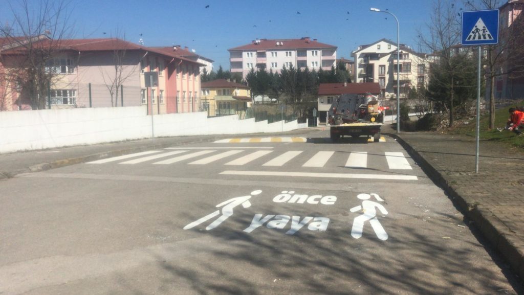 Ulaşım Dairesi Başkanlığı Trafik Şube Müdürlüğü ekiplerince 12 ilçede okul önlerinden başlayarak tüm yaya yollarını bakıma aldı. Okul önlerinde yapılan çalışmalar ile yaya yolları boyandı. Yaya yollarına ekstra araçların geldiği yönde insan figürleri olan “önce yaya” yazıları yazıldı. 12 ilçede okul önlerinde yapılan çalışmalar daha sonra il genelindeki hastane ve kavşaklarda yapılacak.
