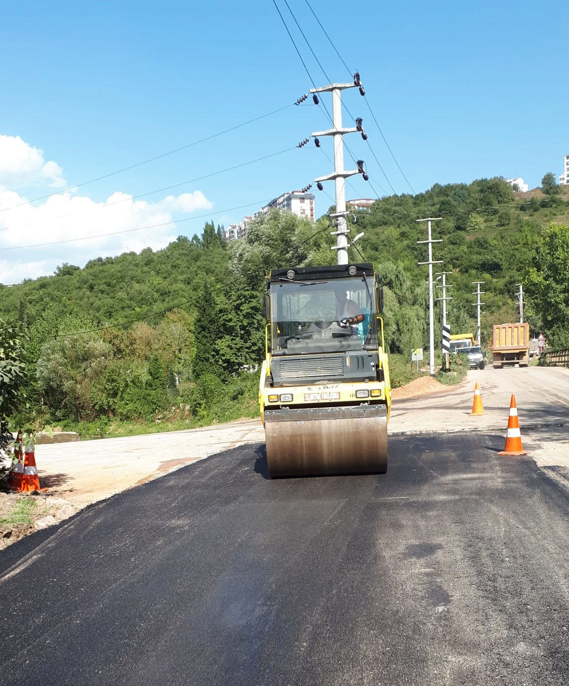 Altyapı çalışmaları tamamlanan cadde ve sokakların üstyapı çalışmaları da bir yandan yapılıyor. Yüklenici firmalar tarafından gerçekleştirilen çalışmalar kapsamında içme suyu hattı tamamlanan İzmit Çayırköy Turan Güneş Caddesi’nde asfalt serim çalışmaları gerçekleştiriliyor. Altyapı çalışmaları nedeniyle bozulan yollarda gerekli düzenlemeler yapıldıktan sonra binder ve asfalt serimi ile asfalt yama çalışmaları yapılıyor.