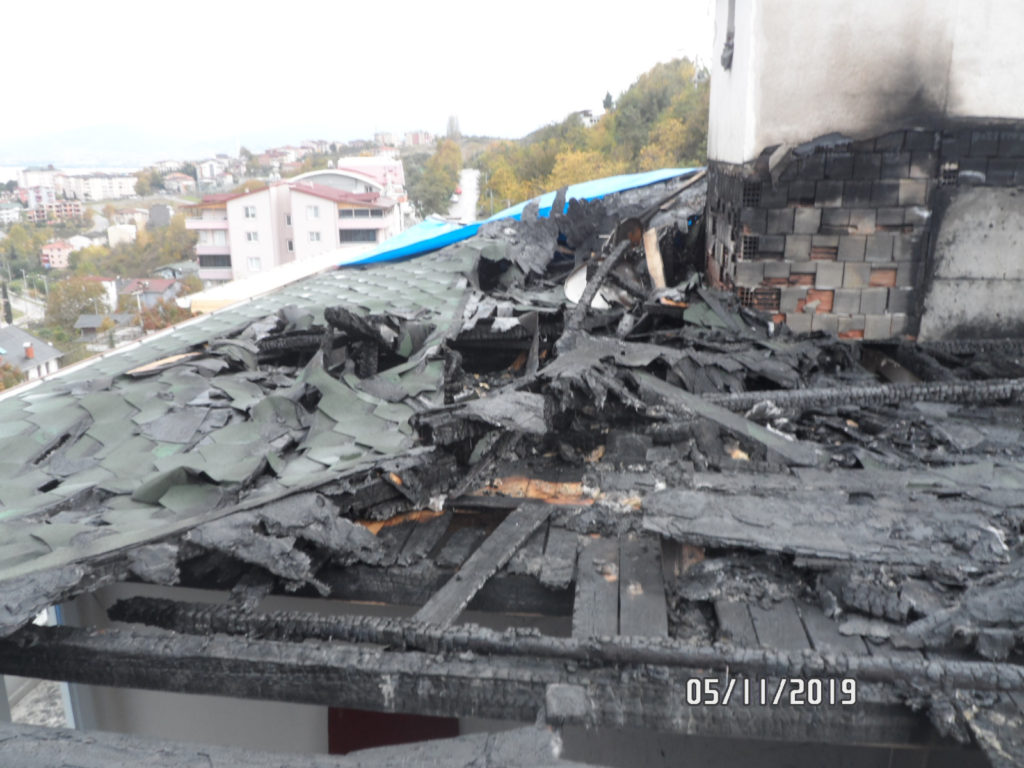 İzmit Hatipköy mevkiinde bulunan bir binada çıkan yangında kullanılamaz hale gelen 4 dairenin çatısı Kocaeli Büyükşehir Belediyesi’nce onarılıyor.