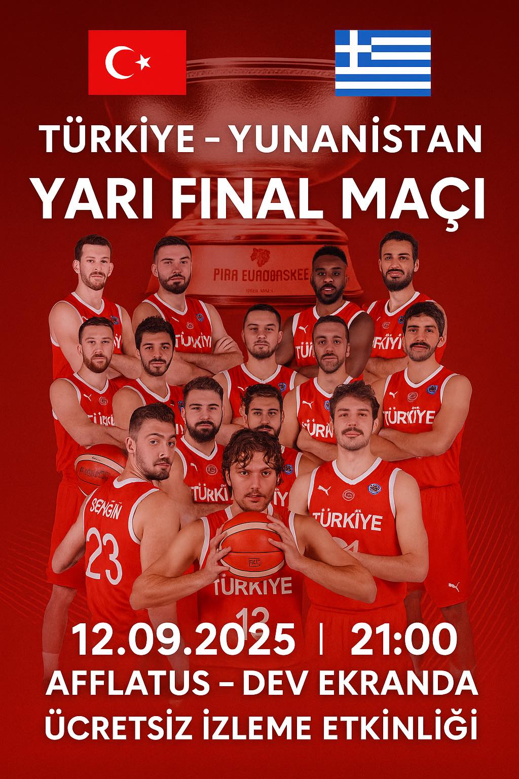12 Dev Adam’ın final yolundaki Büyük heyecanla beklenen Türkiye – Yunanistan yarı final maçını, sporseverler yarın denizin kıyısında afflatus’ta sınırsız çay eşliğinde izleyecek…